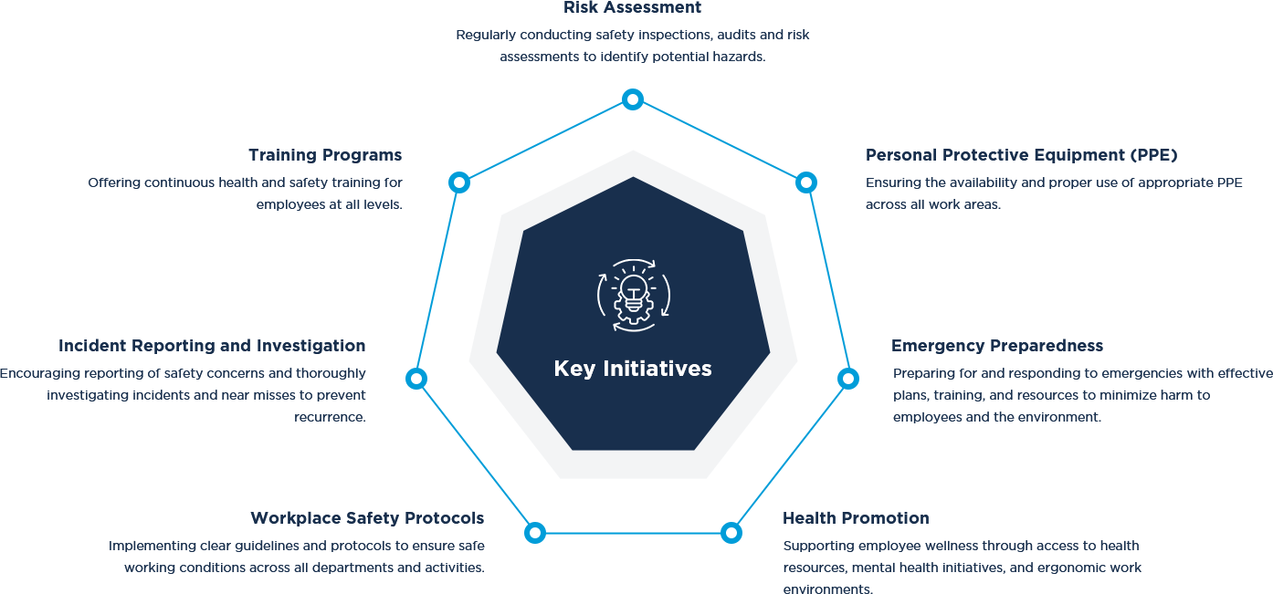 The health and safety of our employees are paramount. We are committed to providing a safe, healthy, and supportive work environment where every individual can thrive. Our Health and Safety Management system is designed to identify, eliminate, and mitigate risks associated with workplace hazards, promoting a culture of safety and well-being and continuous improvement.