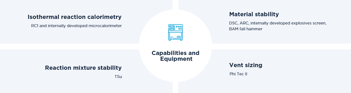 At Asymchem Sandwich, we conduct thorough and detailed hazard assessments at every stage of process development. Our highly experienced team performs comprehensive hazard evaluations during the development phase and prior to scale-up, ensuring the safe operation of the process. In our dedicated process laboratory, we conduct calorimetry and thermal screening to assess the thermal hazards of a process, along with specialized testing for vent sizing when necessary. Our state-of-the-art facility is fully equipped to carry out complete hazard assessments for any given process.